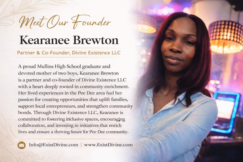 At Divine Existence, LLC, we are dedicated to creating a connected, empowered, and thriving community right here in South Carolina. Our mission is to strengthen community bonds through engaging entertainment and teaching valuable skills.